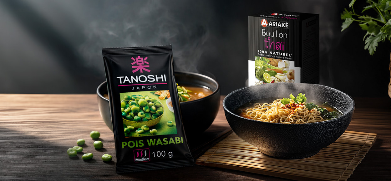 Nouilles, soupes Miso, riz, ramen, sauces, thé, matcha