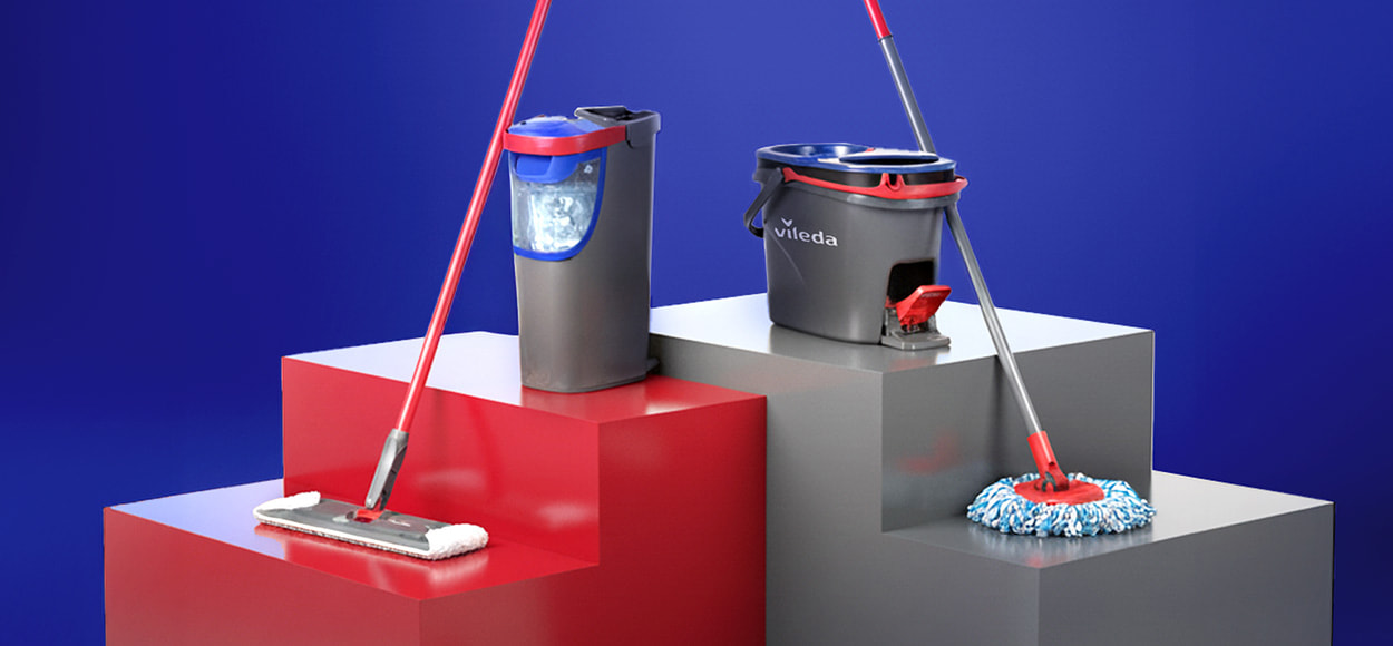 Vileda Utramax Kit Complet Balai et Seau-essoreur, Ensemble de balais à Plat avec Seau, et Housse en Microfibre, Retire Plus de 99% des bactéries avec de l'eau, Vileda Love it Clean